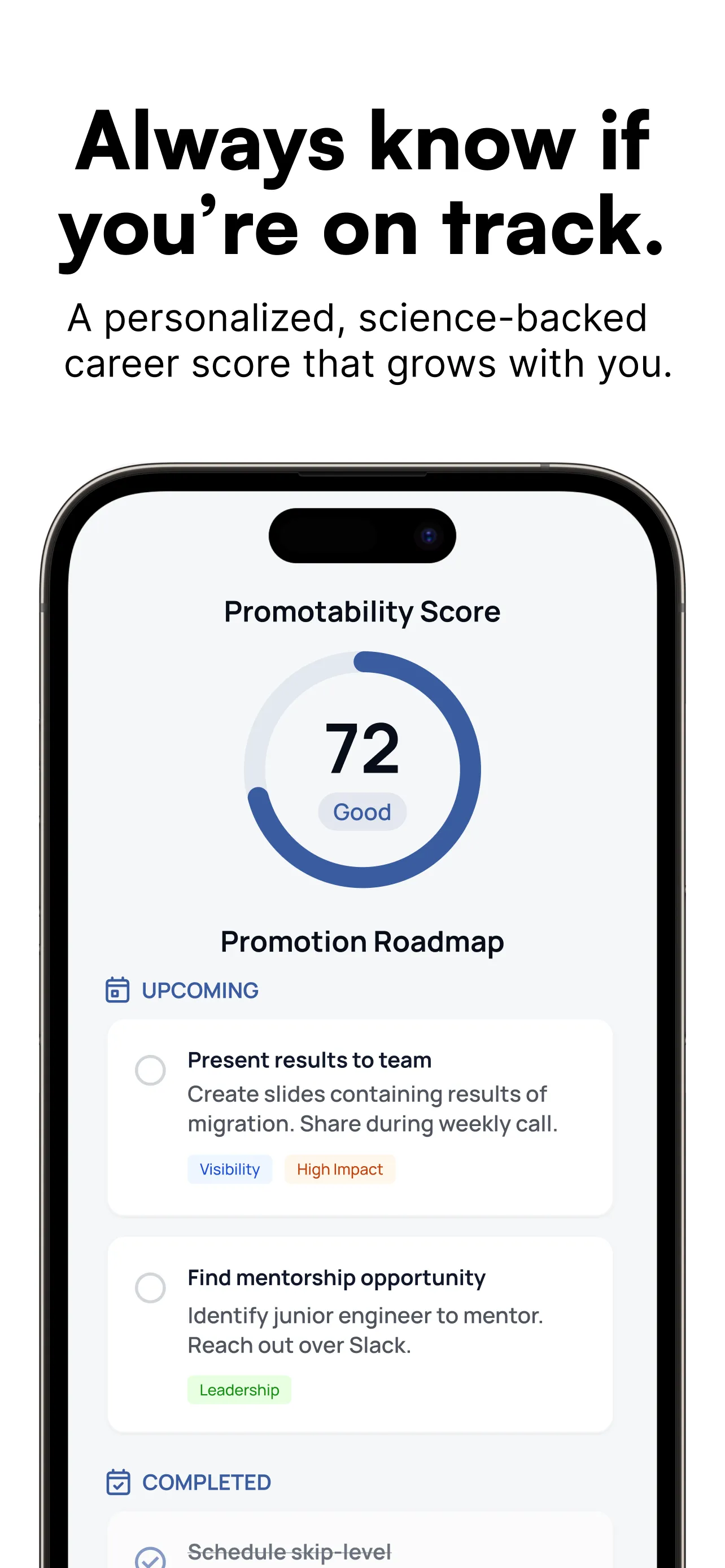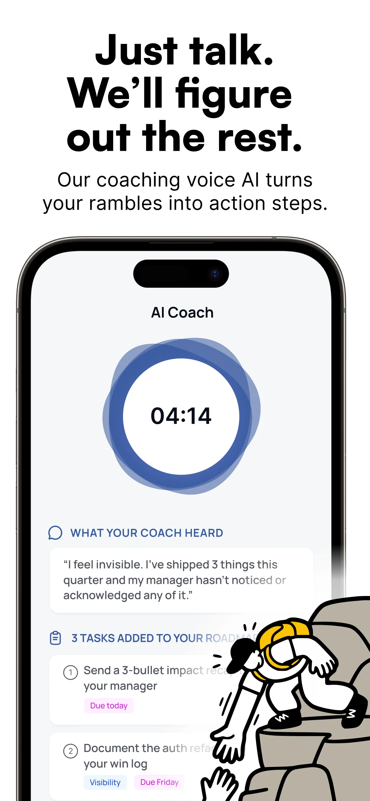 Get an AI coach who knows your situation and tells you exactly what to do next — for the promotion, the PIP, and the stuff no one teaches you.